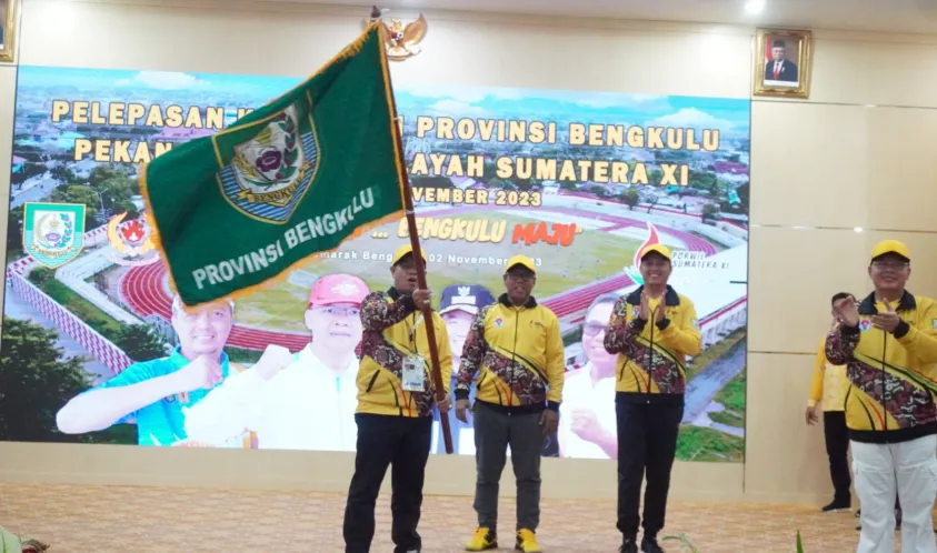 IndonesiaInteraktif.com, Bengkulu -- Sebanyak 184 kontingen Bengkulu pada PORWIL XI Sumatera tahun 2023 Riau, yang terdiri 112 atlet, 38 manager dan pelatih, 8 orang tim kesehatan dan keamanan, 5 jurnalis serta 12 orang official kontingen, hari ini Kamis (02/11), secara resmi dilepas Gubernur Bengkulu Rohidin Mersyah, di Balai Raya Semarak Bengkulu.