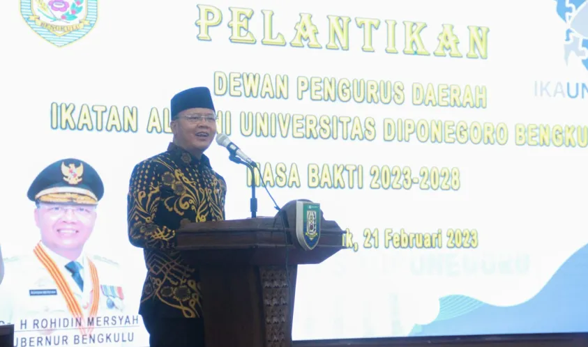 Indonesiainteraktif.com, Bengkulu -- Hadir pada Pengukuhan Pengurus Dewan Pimpinan Daerah Ikatan Keluarga Alumni Universitas Diponegoro (DPD IKA UNDIP) Bengkulu Masa Bhakti 2023-2028, di Balai Raya Semarak Bengkulu, Selasa (21/02/2023) malam, Gubernur Bengkulu Rohidin Mersyah menyampaikan, bahwa peranan akademisi khususnya alumni Perguruan Tinggi, sangat penting dalam membangun dinamika perekonomian, baik secara nasional maupun daerah.