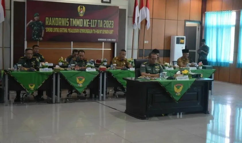Indonesiainteraktif.com , Kota Bengkulu -- Asisten 2 Pemkot Bengkulu, Saipul Apandi, aktif mengikuti rapat koordinasi teknis (Rakornis) TMMD ke-117 Kodim 0407 Kota Bengkulu TA 2023, yang diadakan di Aula Sudirman Korem 041/Gamas pada Selasa, 4 Juli 2023. Rapat ini dipimpin oleh Kasrem 041/Gamas Bengkulu, Kolonel Inf Anhar Premana, S.E. M.M. Dalam rapat tersebut, Kasrem menjelaskan bahwa TMMD adalah program terpadu antara TNI dan Pemerintah daerah yang bertujuan untuk mempercepat pembangunan di daerah, dengan harapan meningkatkan kesejahteraan masyarakat setempat.