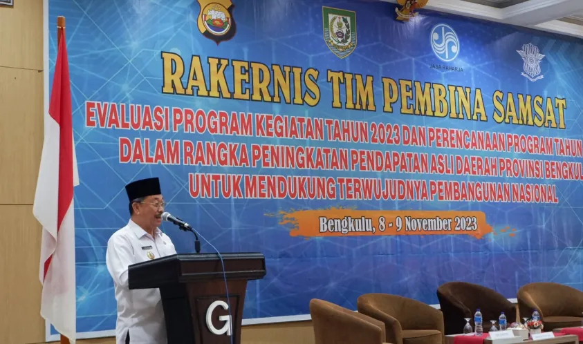 IndonesiaInteraktif.com, Bengkulu -- Sebagai bentuk evaluasi program kegiatan tahun 2023 dan perencanaan program tahun 2024 dalam rangka peningkatan Pendapatan Asli Daerah (PAD), Pemerintah Provinsi Bengkulu melalui Badan Pengelolaan Keuangan Daerah (BPKD) menggelar Rapat Kerja Teknis (Rakernis) Tim Pembina Sistem Administrasi Manunggal Satu Atap (Samsat), di Hotel ternama Kota Bengkulu, Rabu (8/11).
