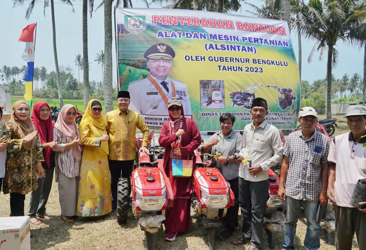 Gubernur Bengkulu Rohidin Mersyah Menyerahkan Bantuan Alsintan Kepada Kelompok Tani di Kabupaten Kaur