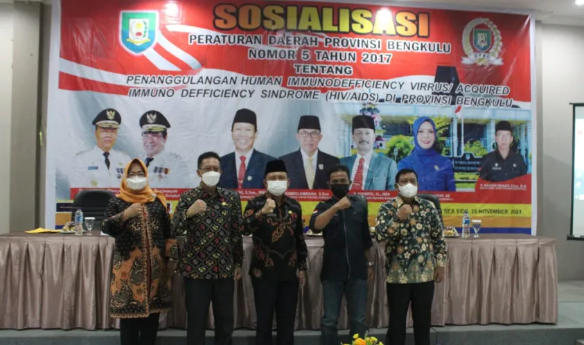 Indonesiainteraktif.com, Bengkulu - Guna memberikan infomasi upaya penanggulangan dan pencegahan penyakit HIV/AIDS terhadap Aparatur Sipil Negeri (ASN), Pemerintah Provinsi Bengkulu melalui Sekretariat DPRD Provinsi menggelar Sosialisasi Peraturan Daerah Nomor 5 Tahun 2017, di hotel kawasan Pantai Panjang Bengkulu, Senin (25/11/2021).