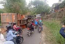 Truk Terbalik di Jalan Lintas Kepahiang - Curup