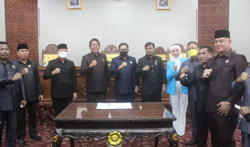 Selanjutnya, pimpinan rapat Ihsan Fajri mengambil Keputusan Bersama atas disetujui Raperda Pengelolaan Barang Milik Daerah menjadi Perda yang kemudian dilakukan Penandatanganan Keputusan Bersama, yang ditandatangani seluruh pimpinan dewan provinsi dan disaksikan Gubernur Rohidin, unsur Forkopimda serta Ketua-Ketua Fraksi.