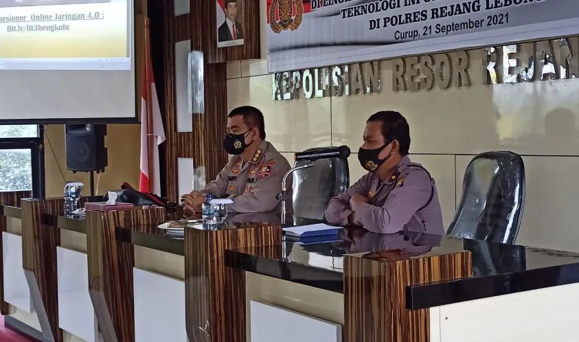 Indonesiainteraktif.com, Rejang Lebong - Tim Puslitbang Polri melaksanakan penelitian “Evaluasi Penggelaran Aplikasi di Lingkungan Polri Dalam Rangka Menerapkan Teknologi Informasi Era Police 4.0” di Polres Rejang Lebong, Selasa (21/09/2021).