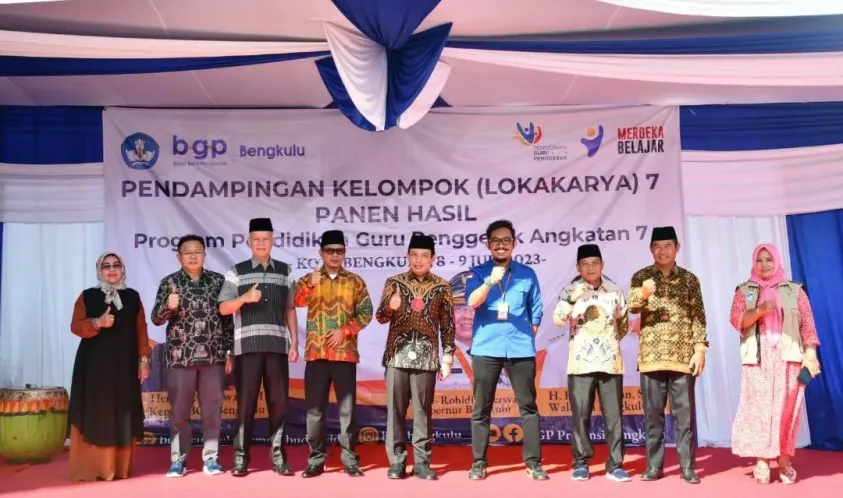 Indonesiainteraktif.com , Kota Bengkulu -- Pemerintah Kota Bengkulu menggelar kegiatan Pendampingan Kelompok (Lokakarya) Program Pendidikan Guru Penggerak angkatan ke-7 di Berendo, Kota Bengkulu pada Minggu (09/07/2023). Kegiatan ini merupakan kerjasama antara Dinas Pendidikan dan Kebudayaan Kota Bengkulu dengan Balai Guru Penggerak (BGP) dengan tujuan meningkatkan kualitas pelayanan pendidikan di kota tersebut. Wakil Walikota Bengkulu, Dedy Wahyudi, hadir dan membuka acara tersebut, didampingi oleh Kepala BGP Kota Bengkulu, Asisten I Pemerintah Kota Bengkulu, Anggota DPRD Kota Bengkulu Teuku Zulkarnain, serta jajaran pejabat Dinas Pendidikan dan Kebudayaan Kota Bengkulu.