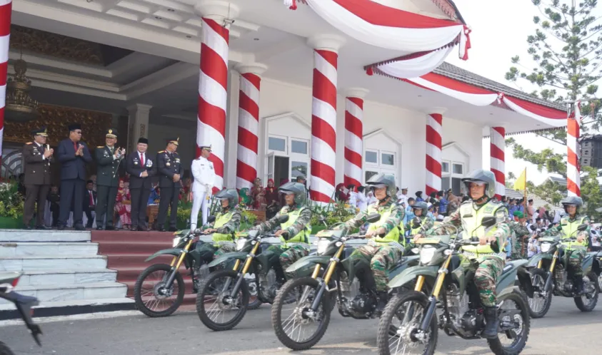 Dalam kesempatan itu, Gubernur Rohidin bersama Danrem 041 Gamas Bengkulu, Kapolda Bengkulu dan unsur Forkopimda Provinsi Bengkulu, melepas Defile Parade 2.000 personil TNI dan berbagai pertunjukan menarik lainnya.