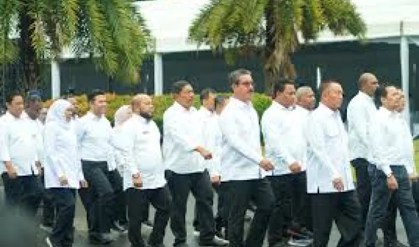 Meski gerimis menyelimuti ibu kota, prosesi tetap berjalan dengan khidmat. Para kepala daerah terpilih mengikuti rangkaian acara dengan penuh keseriusan, di mana barisan gubernur dan wakil gubernur berada di posisi terdepan, diikuti oleh rombongan wali kota dan bupati terpilih.