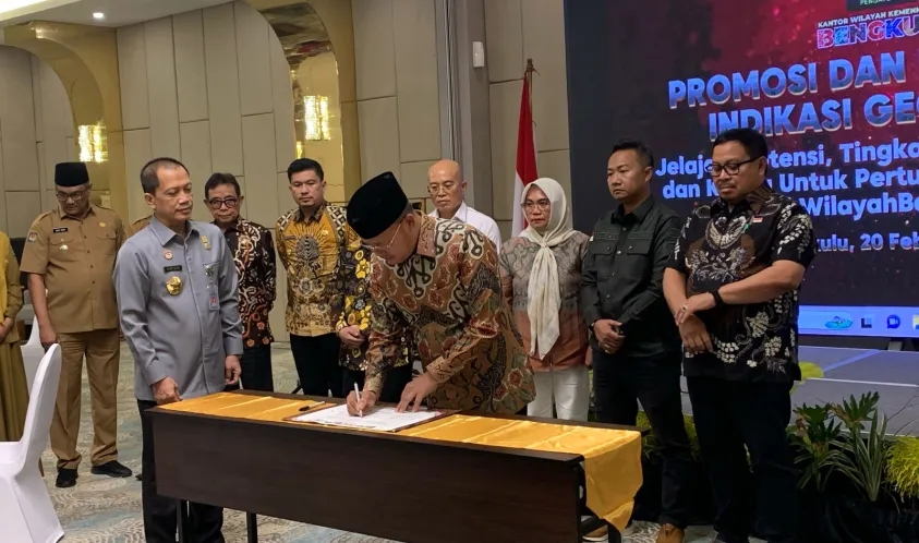 IndonesiaInteraktif.com, Bengkulu -- Gubernur Bengkulu, Prof. Dr. H. Rohidin Mersyah, M.MA., hadiri penandatangan komitmen bersama promosi dan diseminasi indikasi geografis yang bertempat di Hotel Two K-Azana Style Bengkulu, Selasa (20/02/2024).