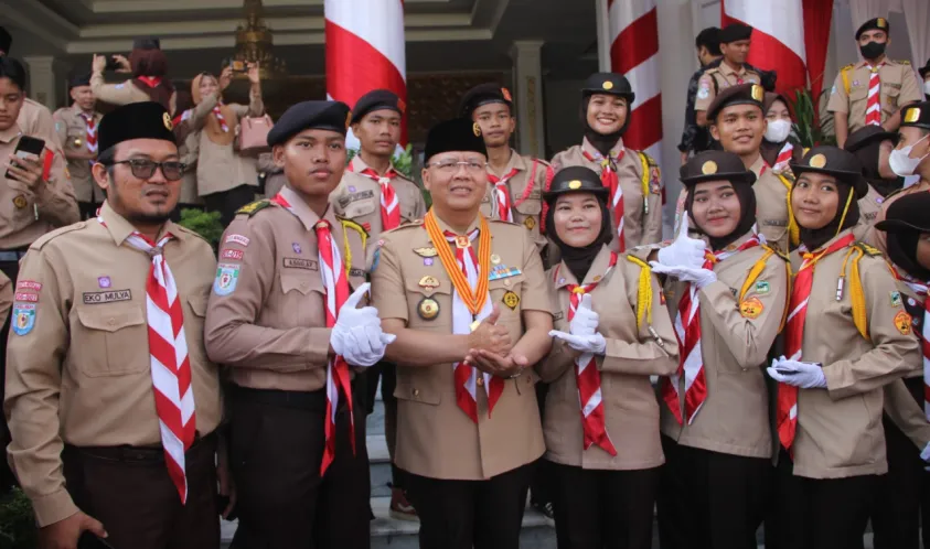 Indonesiainteraktif.com, Bengkulu - Gubernur Bengkulu Rohidin Mersyah selaku Ketua Majelis Pembimbing Daerah (Kamabida) Kwartir Daerah (Kwarda) Gerakan Pramuka 07 Bengkulu pimpin upacara peringatan Hari Pramuka ke 61 Tahun 2022, di halaman Gedung Daerah Balai Raya Semarak Bengkulu, Minggu (14/08/2022).