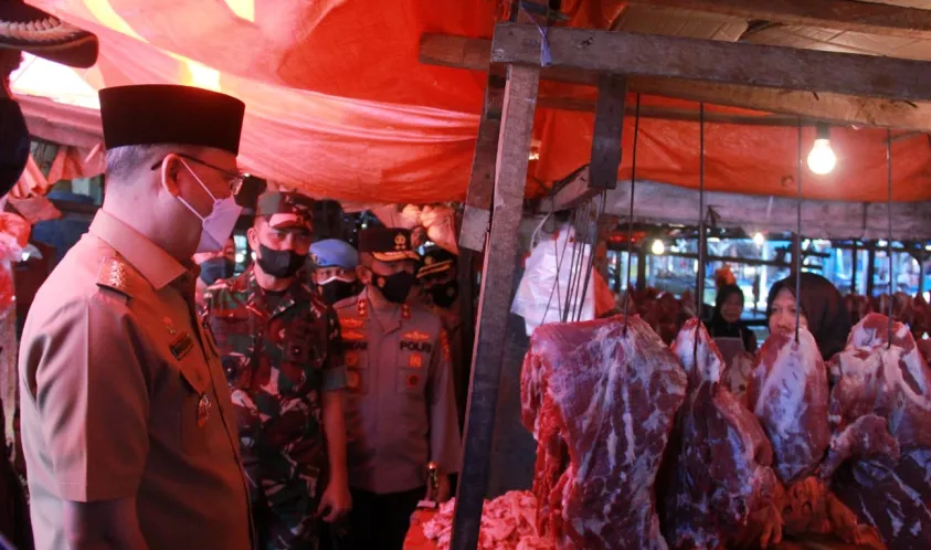 Indonesiainteraktif.com, Bengkulu - Gubernur Rohidin Mersyah bersama Forkopimda Provinsi Bengkulu meninjau Pasar Panorama guna melakukan pemantauan harga dan ketersediaan stok minyak goreng curah serta beberapa komoditas lainnya, seperti beras, daging dan telur ayam, Selasa (05/04/2022).