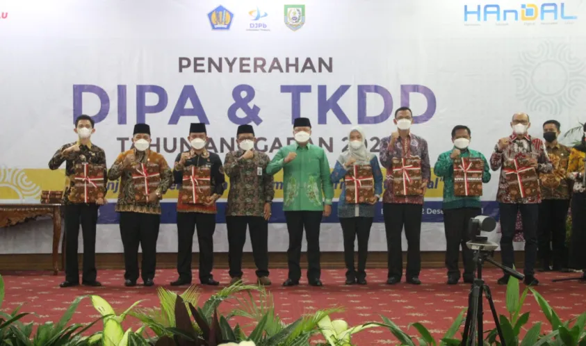 Indonesiainteraktif.com, Bengkulu - Gubernur Bengkulu Rohidin Mersyah pimpin penyerahan Daftar Isian Pelaksanaan Anggaran (DIPA) dan Daftar Alokasi Transfer ke Daerah dan Dana Desa (TKDD) Tahun 2022, di Gedung Daerah Balai Raya Semarak, Kamis (02/12/2021).