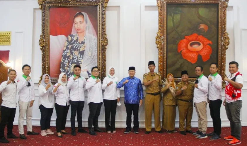 Indonesiainteraktif.com, Bengkulu - Gubernur Bengkulu Rohidin Mersyah terima Audiensi Pemuda Tani HKTI Provinsi Bengkulu terkait Rencana Kegiatan Pelepasan Ekspor Komoditas Kopi oleh Wakil Menteri Pertanian pada 17 Desember 2021, di Gedung Daerah Balai Raya Semarak Bengkulu, Senin (29/11/2021).