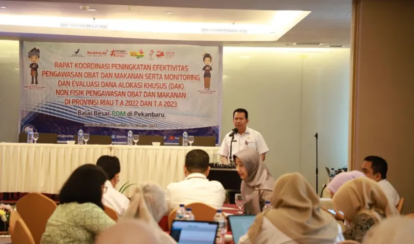 IndonesiaInteraktif.com, Riau -- Balai Besar Pengawas Obat dan Makanan (BBPOM) Kota Pekanbaru menggelar rapat koordinasi (Rakor) peningkatan efektivitas pengawasan obat dan makanan wilayah Provinsi Riau di Pekanbaru, Riau.