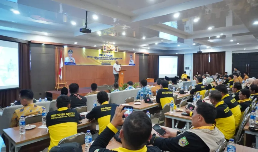IndonesiaInteraktif.com, Bengkulu -- Sebanyak 55 orang dari Badan Penanggulangan Bencana Daerah (BPBD), Basarnas dan Dinas Sosial Provinsi Bengkulu mendapatkan pelatihan sistem manajemen logistik dan peralatan penanggulangan bencana selama 3 hari, 2-4 Oktober bertempat di Hotel Wilo Kota Bengkulu, 02/10/2023.