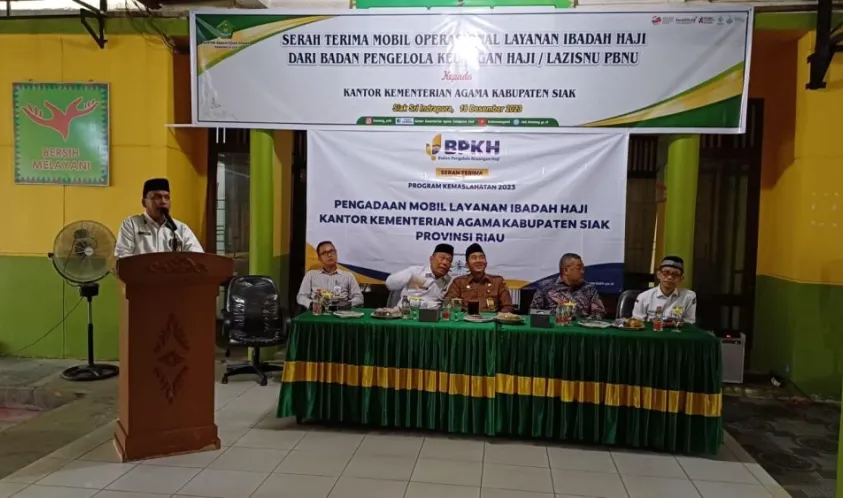 Penyerahan yang langsung disampaikan Amri Yusuf dari BPKH dan Qohari Cholil dari LAZIS-NU tersebut diterima Kepala Kantor Kementerian Agama Siak Erizon Efendi, didampingi Pelaksana Tugas Kepala Kantor Wilayah kementerian Agama Provinsi Riau yang diwakili Kabid Penyelenggaraan Haji dan umrah Syahrudin, Senin (18/12/2023).