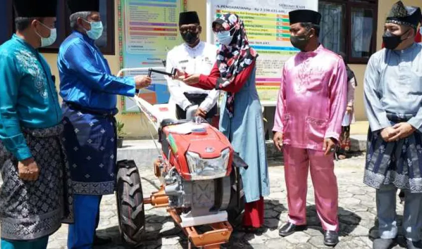 “Tadi saya menyerahkan satu unit traktor tangan, ini bisa di gunakan mempermudah mengolah tanah. Disini usulan program umkm tanamnya pepaya, silakan ditanam,” pintanya.
