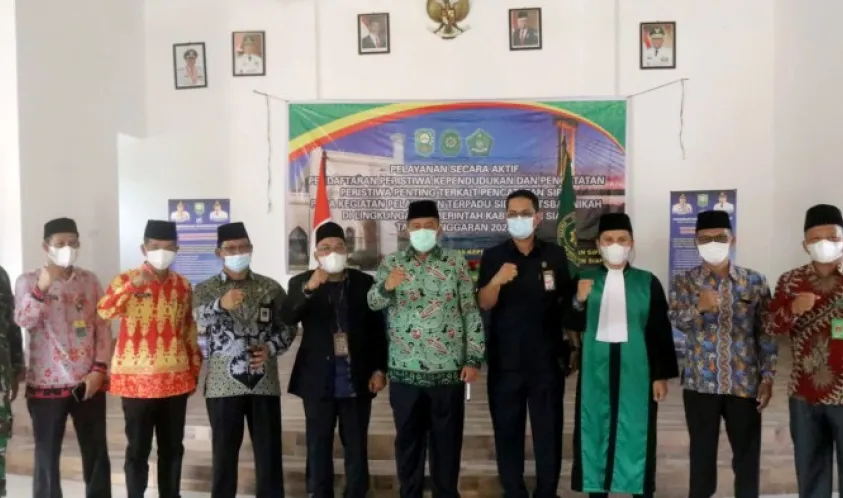 Bupati Siak Drs. Alfedri, M.Si mengucapkan apresiasi kepada pengadilan agama Siak dan Disdukcapil Kabupaten Siak dan Kemenag Siak atas program kerjasama ini. “Sebelumnya kita sudah MOU dengan pengadilan agama, Kemenag Kabupaten Siak terkait itsbat nikah, tujuan kita baik untuk menertibkan administrasi penduduk agar bisa terdata semua,” ucap Bupati