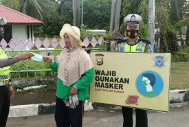 Ops Patuh Nala, Polres Mukomuko Sebar Stiker Himbau Prokes dan Bagi Masker
