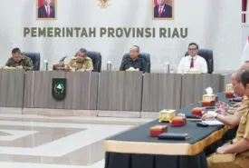 IndonesiaInteraktif.com, Pekanbaru -- Gubernur Riau (Gubri) Brigjen TNI (Purn) Edy Natar Nasution menghadiri rapat ko