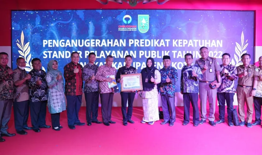 Dengan penilaian itu, Ombudsman RI menyerahkan Piagam penghargaan predikat kepatuhan standard pelayanan publik tahun 2022 yang diterima langsung oleh Bupati Rohil Afrizal Sintong, Selasa (28/2/2023) di Balai Serindit Pekanbaru.