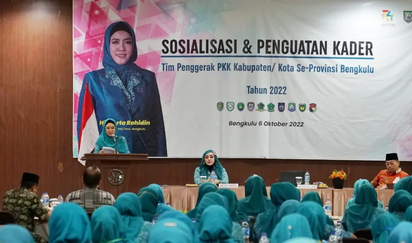 Indonesiainteraktif.com, Bengkulu - Tim Penggerak (TP) Pemberdayaan Kesejahteraan Keluarga (PKK) Provinsi Bengkulu menggelar sosialisasi dan penguatan kader TP PKK se-Kabupaten/kota se-Provinsi Bengkulu di Nala Sea Side, Kamis (06/10/2022).