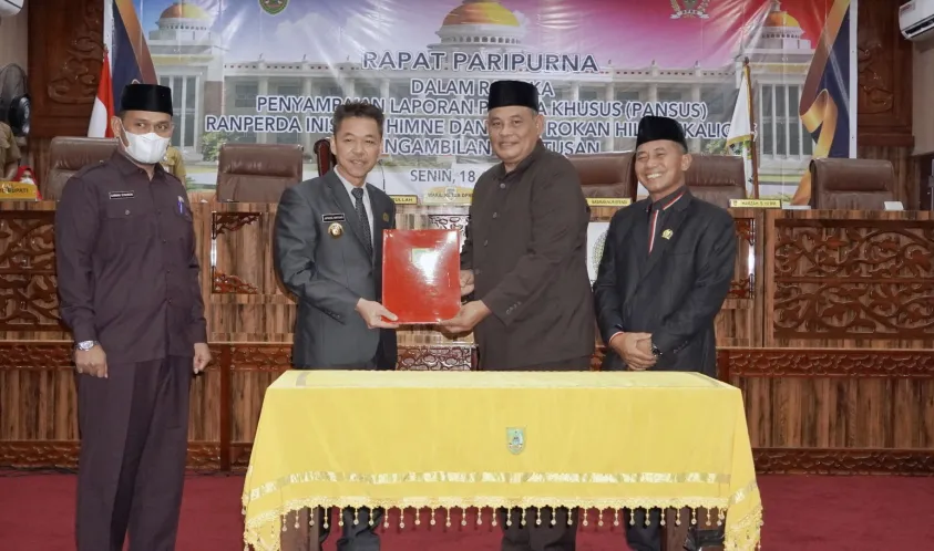Usai mendengarkan hasil laporan Pansus, Wakil Ketua DPRD Abdullah membacakan draf keputusan untuk meminta persetujuan anggota DPRD Rohil secara lisan. Secara serentak, anggota DPRD Rohil menyatakan setuju terhadap Ranperda tersebut.