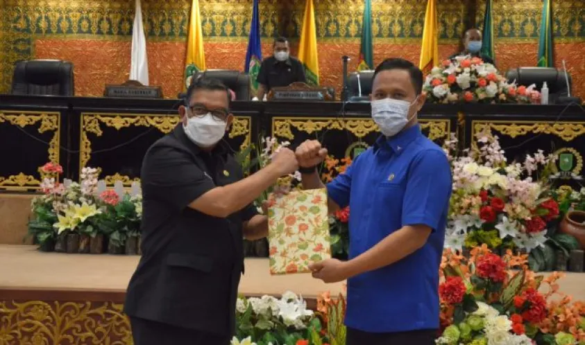 Pada rapat paripurna ini, perwakilan dari setiap fraksi menyerahkan naskah pandangan umum fraksi terhadap LKPJ gubernur tahun 2022 kepada Wakil Gubernur Riau. (Indoaktif/Adv)