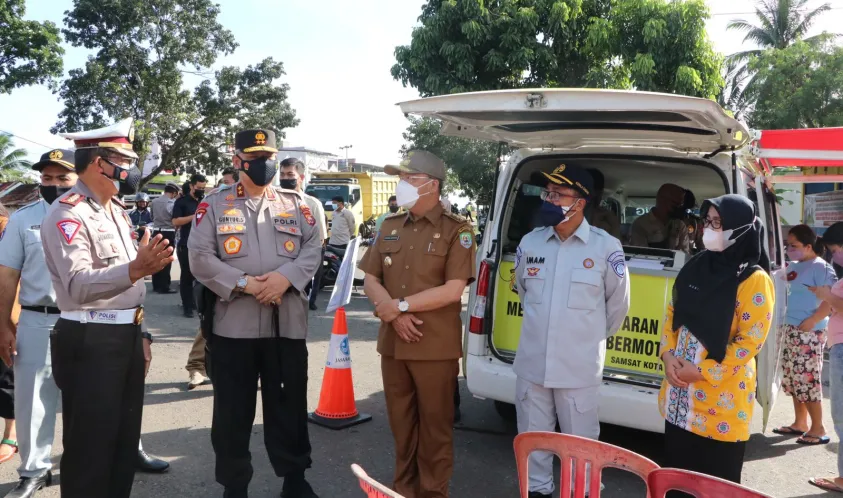 Indonesiainateraktif.com, Bengkulu - Kapolda Bengkulu Irjen Pol Drs. Guntur Setyanto, M.Si., bersama Gubernur Bengkulu Dr. H. Rohidin Mersyah memantau pelaksanaan penertiban kepatuhan pajak yang digelar oleh Gabungan Personil TNI – Polri dan Jasa Raharja di Simpang 4 Nakau Kota Bengkulu, Kamis (04/11/2021).