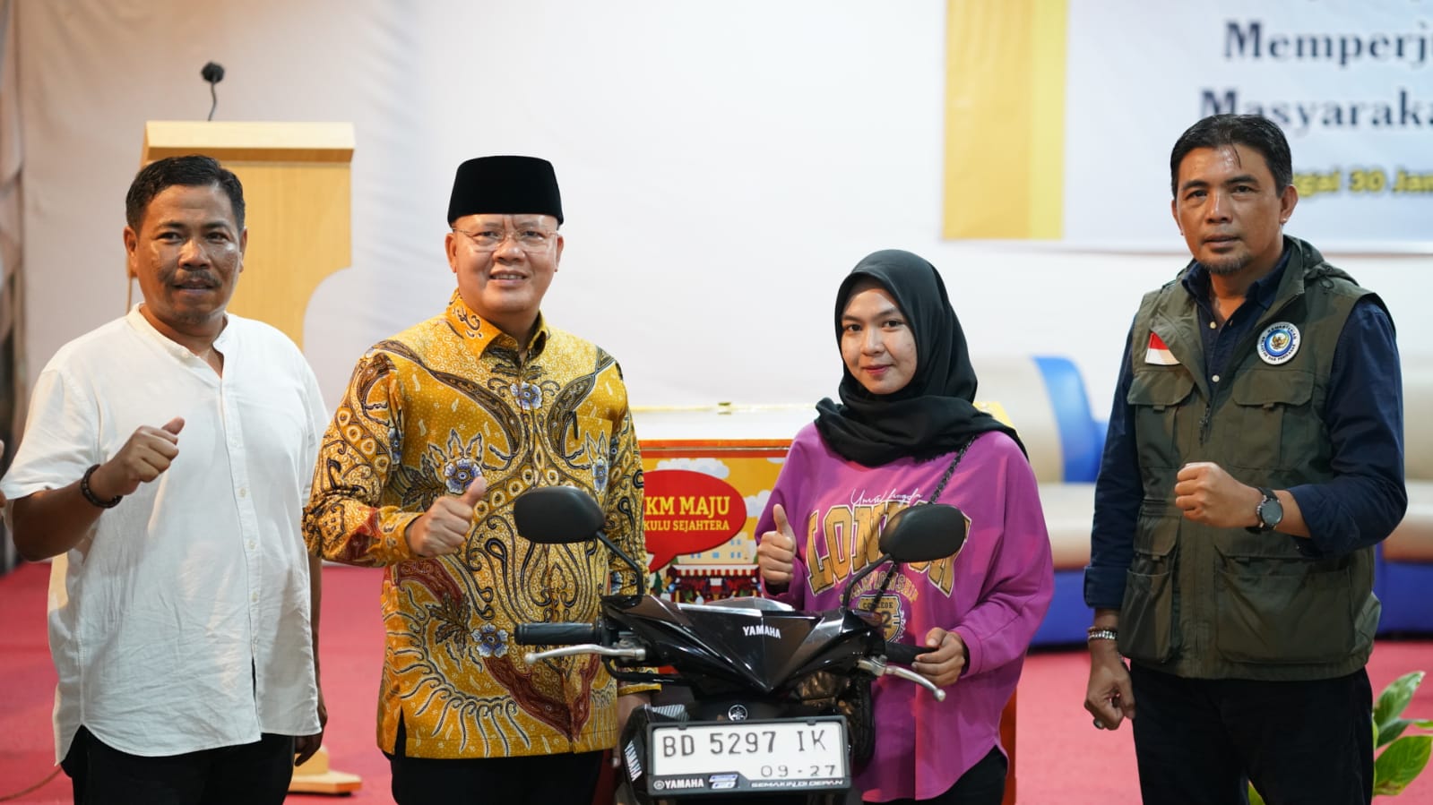 "Bantuan yang sifatnya bukan tunai namun diberikan sarana dan prasarana agar masyarakat produktif, sehingga bisa meningkatkan penghasilan dan kesejahteraan masyarakat," tutur Gubernur Rohidin, saat penyerahan bantuan Gerobak Motor Bang Usin, di Hotel kawasan Pantai Panjang Bengkulu, Sabtu (3/2).