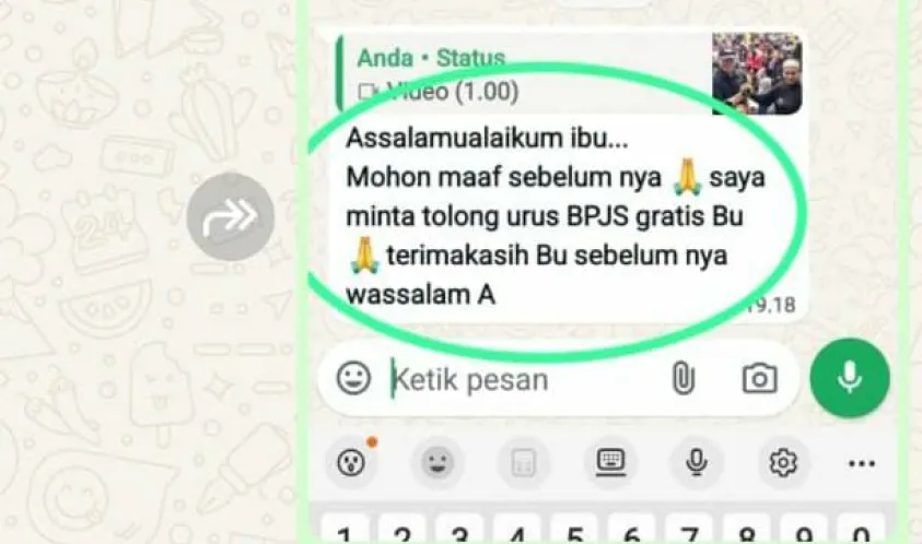 "Assalamualaikum, saya minta tolong uruskan BPJS Kesehatan gratis. Terima kasih sebelumnya," tulis mereka, berharap mendapatkan bantuan segera.