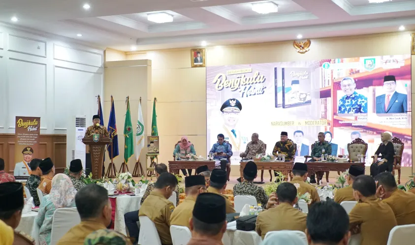Gubernur Rohidin Mersyah menghadiri bedah 'Buku Bengkulu Hebat' di Balai Raya Semarak Bengkulu pada Selasa 27/02/2024