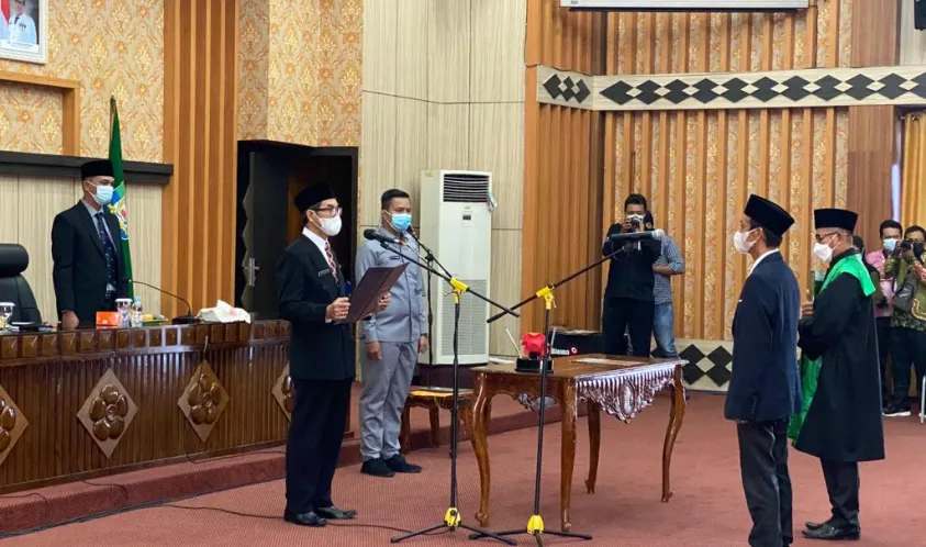Indonesiainteraktif, Bengkulu - Asisten III Setda Provinsi Bengkulu, Gotri Suyanto pimpin Pelantikan Pergantian Antar Waktu (PAW) Anggota Komisi Informasi Provinsi (KIP) Bengkulu Periode 2018-2022 mewakili Gubernur Bengkulu, di Ruang Pola Provinsi Bengkulu, Kamis (21/10/2021).