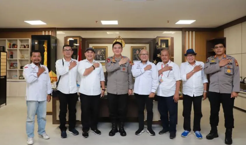 Kedatangan Ketua PWI Riau terpilih, Zulmansyah Sekedang dan rombongan disambut langsung Kapolda Riau dan Kabid Humas, Kombes Sunarto.