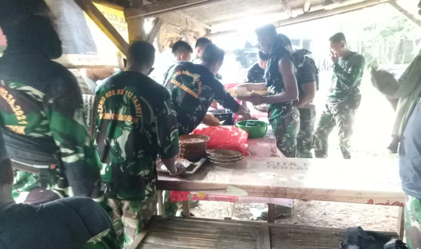 "Kemaren menunya ikan mas dan lele goreng, sayur asem, sambal dan lalapan. Hari ini kita siapkan menu sayur sop, ikan asin, tahu tempe, sambal dan lalapan. Dengan makan bersama kita jadi akrab sama TNI," katanya.