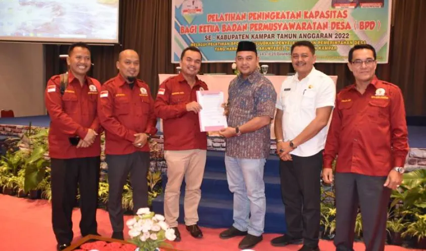 Hal itu ditegaskan Faisal menanggapi pernyataan sikap/rekomendasi Forum BPD Kabupaten Kampar Peserta Bimtek BPD Yogyakarta 10-13 Desember 2022 dan Bimtek BPD Pekanbaru 14-15 Desember 2022 yang dibacakan oleh pengurus Forum BPD Kabupaten Kampar periode 2021-2023 H Muaslam pada kegiatan Pelatihan Peningkatan Kapasitas Anggota BPD se-Kabupaten Kampar Tahun Anggaran 2022 yang diikuti 120 orang ketua/anggota BPD se-Kabupaten Kampar di Hotel Mona, Pekanbaru, Rabu (14/12/2022).