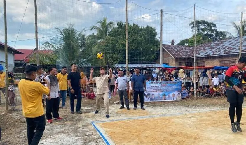 Indonesiainteraktif.com - Ketua DPRD Kampar Muhammad Faisal ST membuka secara resmi semi open turnamen volly Pauh Muda Club Cup 2 antar desa se-Kabupaten Kampar, yang digelar di Dusun Pauh Desa Koto Tibun Kecamatan Kampar Kabupaten Kampar, Senin (20/2/2023).