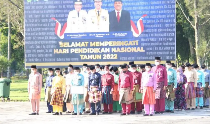 Indonesiainteraktif.com, Pekanbaru - Ketua DPRD Provinsi Riau Yulisman, menghadiri upacara bendera peringatan “Hari Pendidikan Nasional” sekaligus launching dan deklarasi integrasi pendidikan anti narkoba, di Halaman Kantor Gubernur Riau, Jumat (13/05/2022).