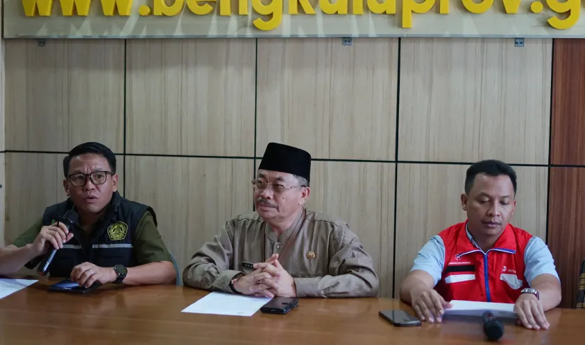 IndonesiaInteraktif.com, Bengkulu -- Asisten II Pemerintah Provinsi Bengkulu Raden Ahmad Denni bersama Kadis ESDM Doni Swabuana menggelar konferensi pers terkait kebocoran pipa Pertamina yang terjadi di Pelabuhan Pulau Baai Bengkulu beberapa waktu lalu.