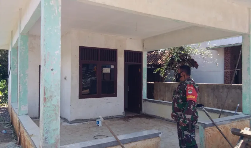 Depok - TNI Manunggal Membangun Desa (TMMD) ke 112 Tahun 2021 di wilayah Kelurahan Panggulan, Kelurahan Pengasinan, Kecamatan Sawangan, Kota Depok tidak hanya membangun rumah, jalan, drainse saja. Tetapi juga merehab sarana posyandu.
