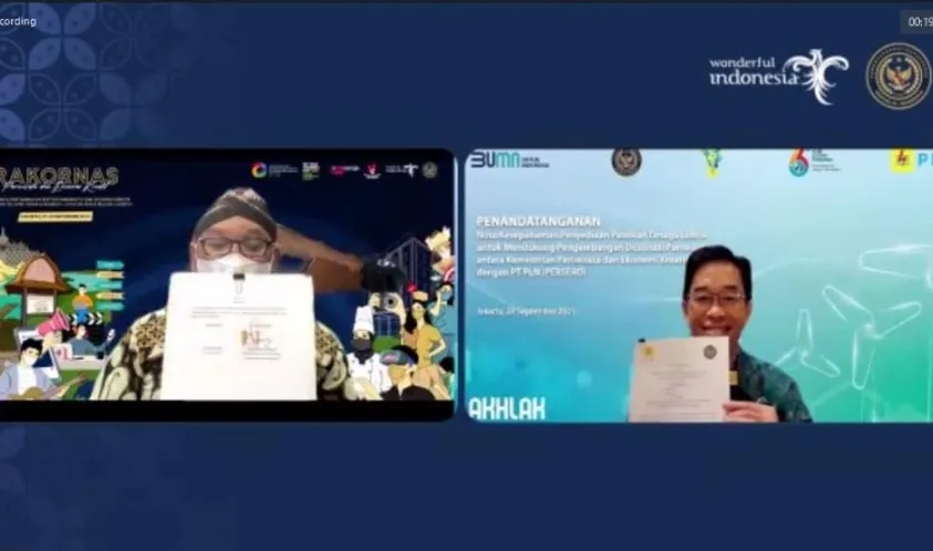 MoU ini menjadi bagian dari kegiatan rapat koordinasi nasional (Rakornas) yang digelar secara virtual. Kesepakatan ditandai dengan penandatanganan MoU yang dilakukan Direktur Utama PLN Zulkifli Zaini dan Deputi Bidang Pengembangan Destinasi dan Infrastruktur Kemenparekraf Vinsensius Jemadu.