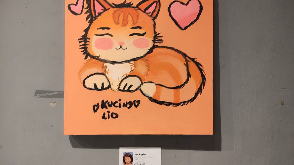 Salah satu peserta cilik, Orleen (5), mencuri perhatian dengan lukisan bertema kucing.