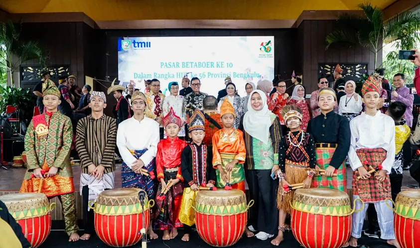 Digelar di Anjungan Bengkulu, Taman Mini Indonesia Indah (TMII), pada Sabtu (7/12), Pasar Betaboer tak hanya menyemarakkan HUT Provinsi Bengkulu ke-56, tetapi juga menjadi ajang penguatan identitas dan potensi daerah. Dimulai dengan Tari Sekapur Sirih yang menyambut para tamu dengan kehangatan khas Bengkulu, Pasar Betaboer menjelma menjadi puncak rangkaian acara HUT Provinsi Bengkulu yang telah berlangsung sejak November.