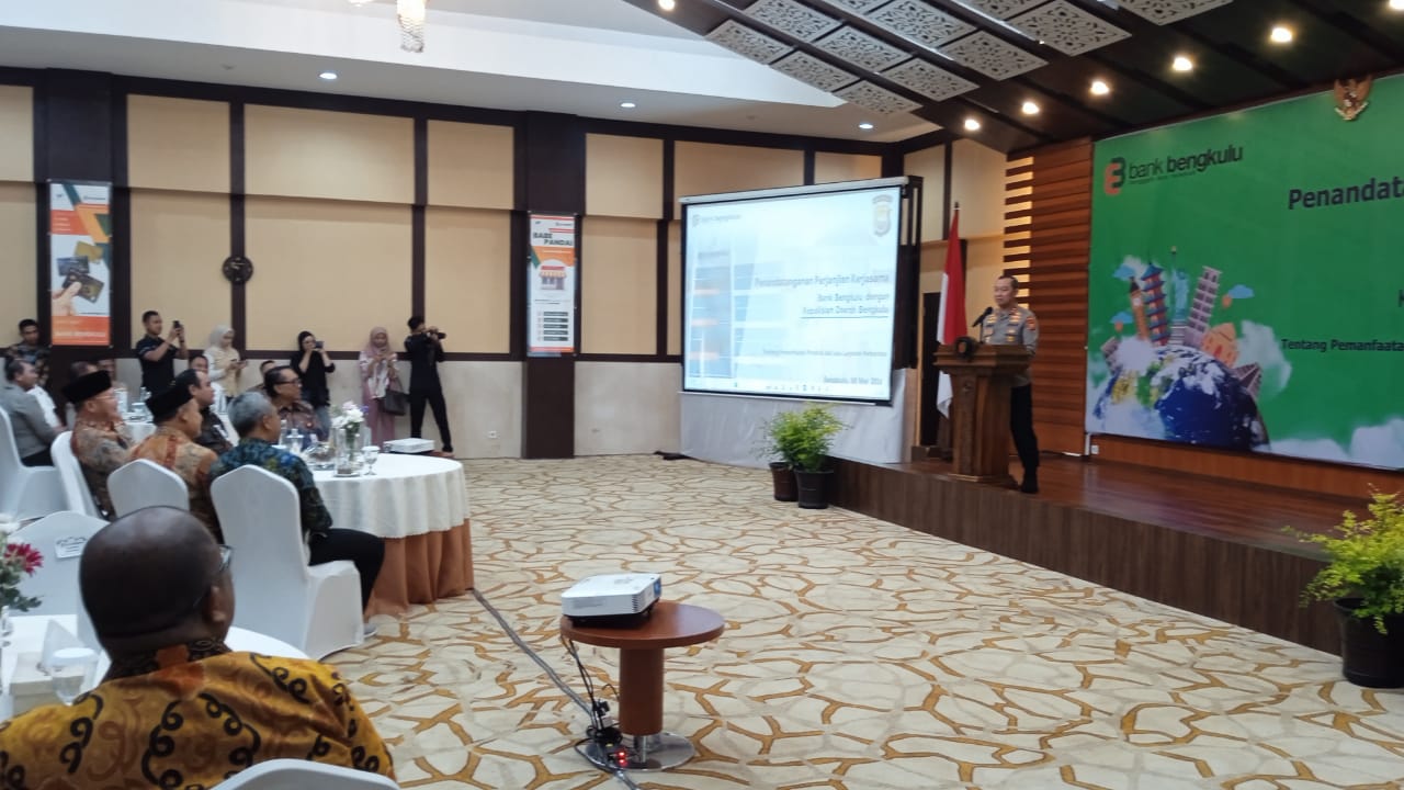 Perjanjian Kerja sama ini ditandatangani Direktur Utama Bank Bengkulu Beni Harjono dan Kapolda Bengkulu Irjen Pol Armed Wijaya yang disaksikan langsung Gubernur Bengkulu Rohidin Mersyah, yang dihadiri juga OJK Bengkulu, Bank Indonesia, BPK Bengkulu, Wakapolda Bengkulu, Perwakilan Kepala Pusat Keuangan POLRI, Kejati serta jajaran Komisaris dan Direksi Bank Bengkulu.