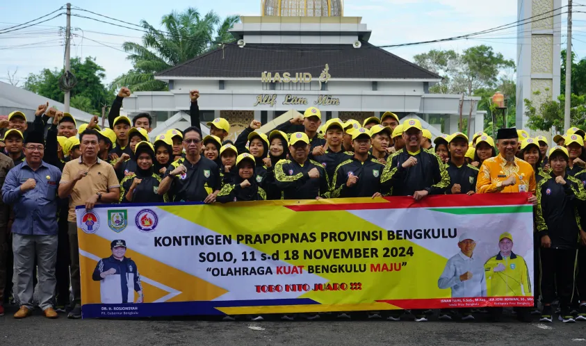 IndonesiaInteraktif.com, Bengkulu -- Sebanyak 106 atlet dari Provinsi Bengkulu yang akan berlaga dalam ajang Pra Pekan Olahraga Pelajar Nasional (Prapopnas) di Solo, Jawa Tengah, resmi dilepas oleh Pemerintah Provinsi Bengkulu di halaman Kantor Gubernur Bengkulu, Jumat (8/11).