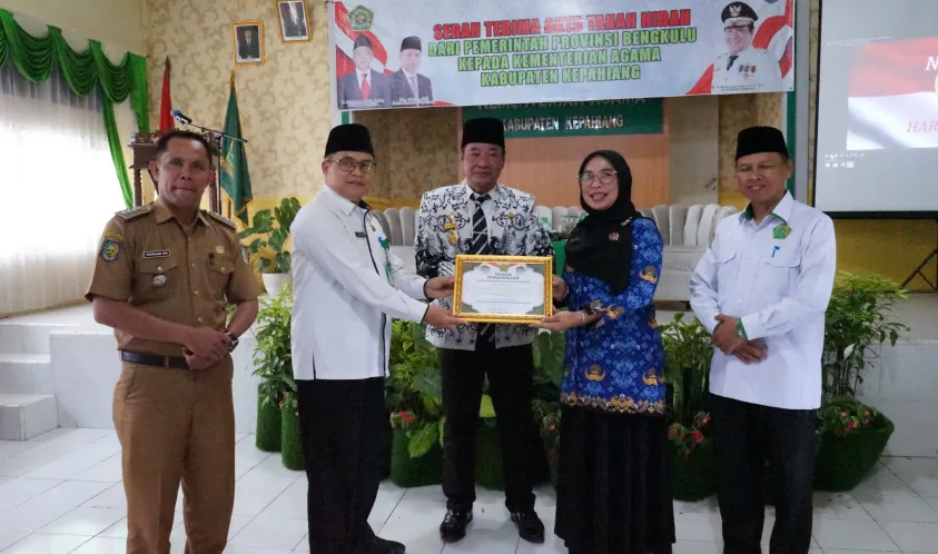 IndonesiaInteraktif.com, Bengkulu -- Pemerintah Provinsi Bengkulu resmi menghibahkan tanah milik Pemprov kepada Kantor Kementerian Agama (Kemenag) Kabupaten Kepahiang.
