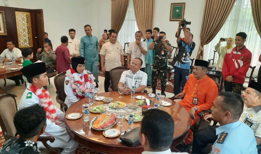 Indonesiainteraktif.com , Pekanbaru -- Pemerintah Provinsi (Pemprov) Riau diwakili Kepala Badan (Kaban) Kesatuan Bangsa dan Politik (Kesbangpol) Provinsi Riau, Jenri Salmon Ginting menyambut kepulangan dua anggota Paskibraka Nasional tahun 2024 asal Provinsi Riau.
