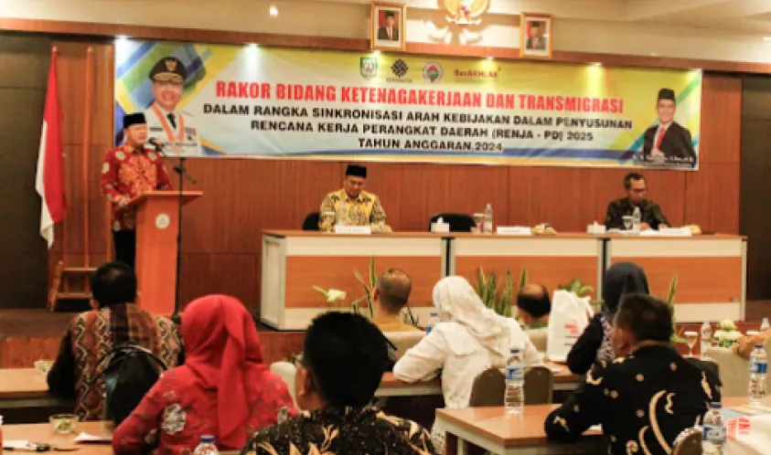 IndonesiaInteraktif.com, Bengkulu -- Gubernur Bengkulu Rohidin Mersyah membuka secara resmi kegiatan Rapat Koordinasi Bidang Ketenagakerjaan dan Transmigrasi dalam rangka sinkronisasi arah kebijakan dalam penyusunan Rencana Kerja Perangkat Daerah (Renja-PD) 2025, yang diselenggarakan Dinas Tenaga Kerja dan Transmigrasi Provinsi Bengkulu, di salah satu hotel kawasan Kota Bengkulu, (10/6).