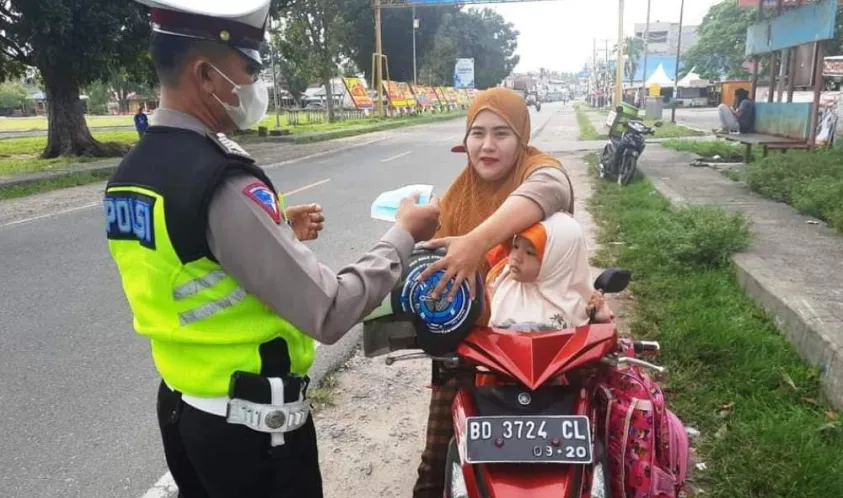 Indonesiainteraktif.com, Kaur - Mempertahankan predikat pemberlakuan pembatasan kegiatan masyarakat (PPKM) level 1 yang sejak pekan lalu diumumkan oleh pemerintah. Upaya pengetatan protokol kesehatan (Prokes) melalui operasi yustisi terus ditingkatkan, seperti yang dilakukan jajaran Satlantas Polres Kaur Polda Bengkulu yang membagikan masker kepada pengendara, Minggu (17/10/2021).