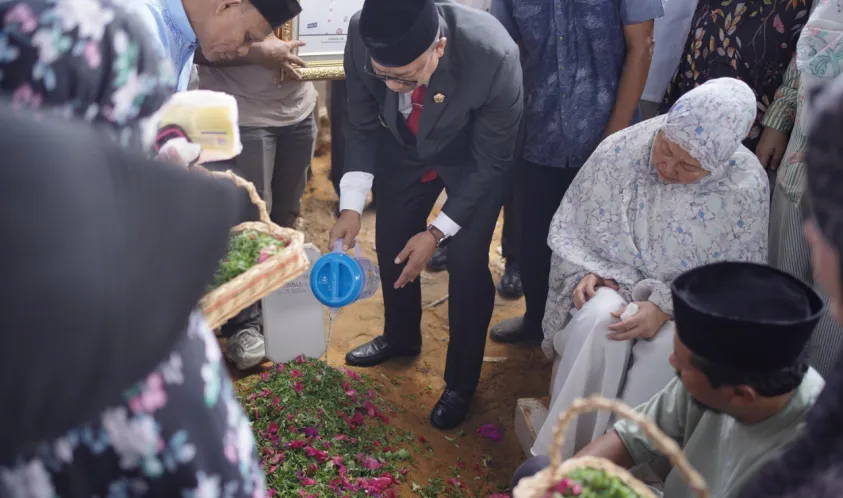 Indonesiainteraktif.com , Pekanbaru -- Pj Gubernur Riau (Gubri) Rahman Hadi beserta Ketua TP PKK Provinsi Riau, Zuliana Rahman Hadi secara langsung mengiringi pemakaman Kepala Dinas Kebudayaan Riau, Raja Yoserizal Zen. Jenazah dimakamkan di TPU Kampung Gobah, Pekanbaru, pada Sabtu (5/10) pagi.